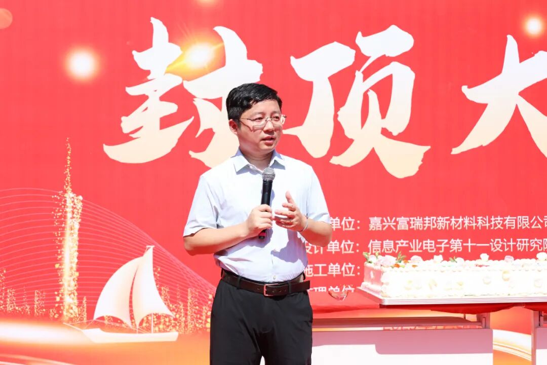 2025年7月5日,嘉兴富瑞邦新材料科技有限公司在平湖经济开发区新群路北侧、新兴三路西侧隆重举行总部大楼封顶仪式。这座总投资数亿元、总建筑面积达56,048.36平方米的现代化科技地标,自2024年7月19日破土动工,至2025年7月5日顺利封顶,历经近一年紧锣密鼓的建设,终于迎来主体结构完工的历史性时刻!